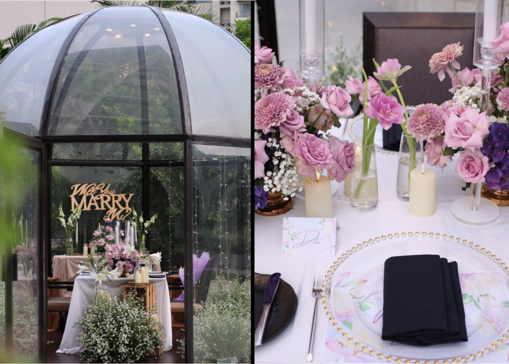 Pod Dining di Fairmont Jakarta menawarkan pengalaman bersantap yang sangat intim dan eksklusif. Anda akan menikmati set menu fine dining yang dirancang khusus untuk pasangan (Rp 5.000.000 untuk 2 pax), seringkali dilengkapi dengan layanan butler pribadi. Ambians yang dihadirkan adalah romantisme tertinggi di bawah langit terbuka, di dalam sebuah pod kaca pribadi yang menjamin privasi total. Keseluruhan vibe adalah mewah, personal, dan damai, jauh dari hiruk pikuk, menjadikannya latar belakang yang sempurna dan unik untuk momen lamaran yang mendalam dan sangat pribadi.